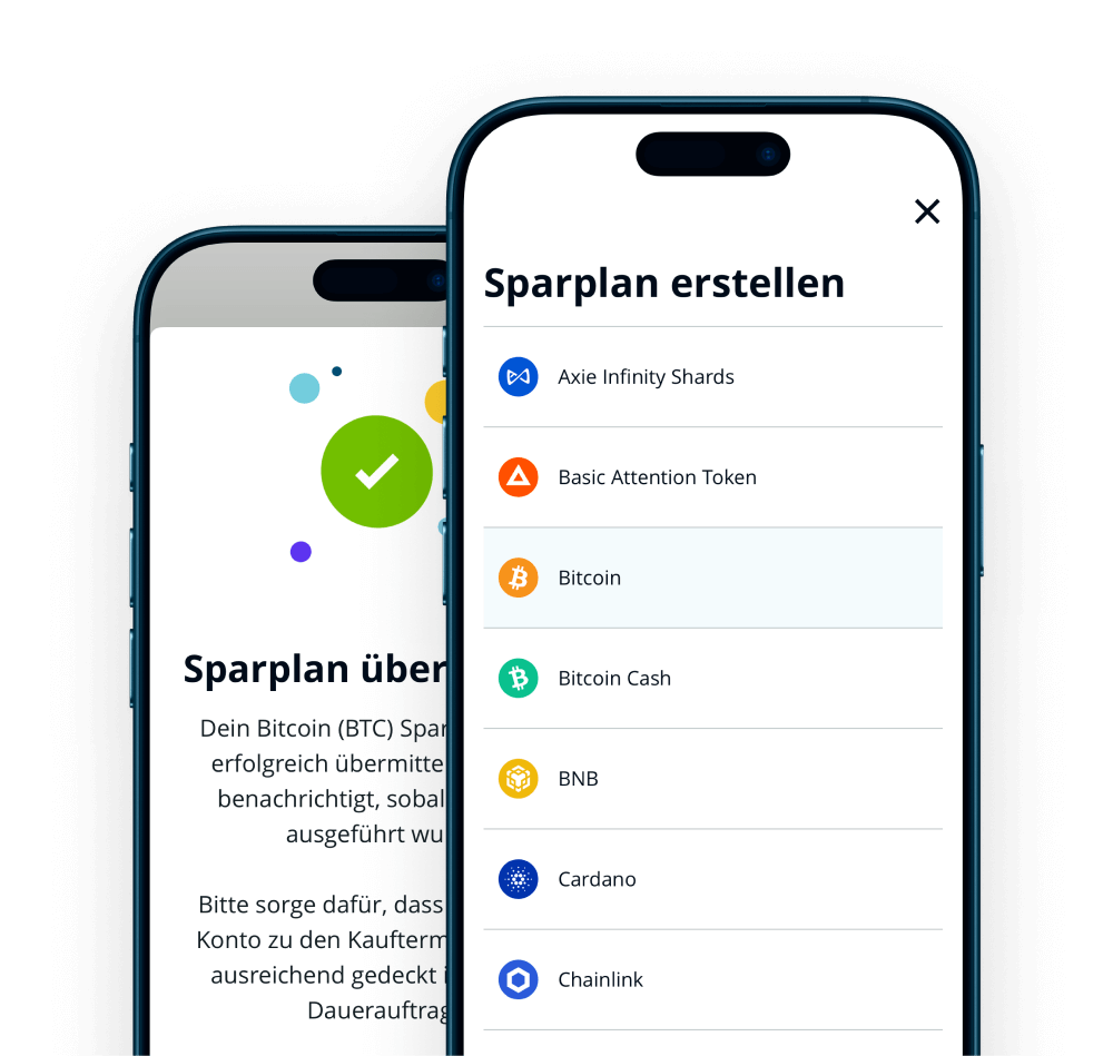 Create as many savings plans as you want. For each cryptocurrency, you can create one – or even several – savings plans.